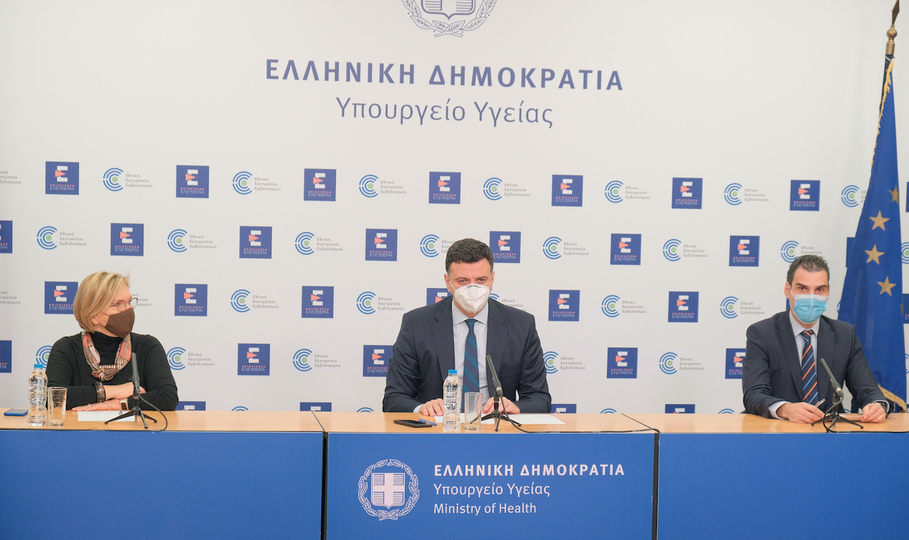 ΣΥΝΤΟΝΙΣΤΗΣ: Κυρίες και κύριοι, καλησπέρα σας. Ξεκινάει η ενημέρωση από τον Υπουργό Υγείας κύριο Βασίλη Κικίλια. Μαζί του σήμερα είναι ο Γενικός Γραμματέας Πρωτοβάθμιας Φροντίδας Υγείας κος Μάριος Θεμιστοκλέους, ο οποίος θα μας μιλήσει για τα επόμενα βήματα της Εθνικής Εκστρατείας Εμβολιασμού, η Συντονίστρια Διευθύντρια της 7ης Πνευμονολογικής Κλινικής στο Νοσοκομείο «Σωτηρία» και Πρόεδρος του Κεντρικού Συμβουλίου Υγείας κα Μίνα Γκάγκα και ο Ταξίαρχος Αρίστος Περρής, ο οποίος θα μας μιλήσει για το σχέδιο εμβολιασμών στη νησιωτική Ελλάδα.