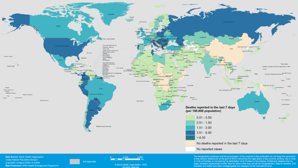 Θάνατοι COVID-19 ανά 100.000 πληθυσμού σε χώρες / περιοχές, 31 Ιανουαρίου – 6 Φεβρουαρίου 2022