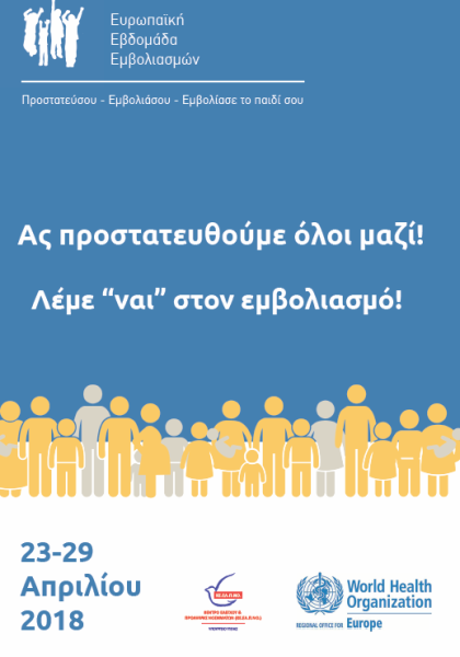 Η Ευρωπαϊκή Εβδομάδα Εμβολιασμού που πραγματοποιείται φέτος στις 23-29 Απριλίου 2018, αποτελεί μία πρωτοβουλία, η οποία εφαρμόζεται από τα κράτη μέλη και συντονίζεται από τον Παγκόσμιο Οργανισμό Υγείας (ΠΟΥ). Για μία εβδομάδα, όλες οι χώρες ενώνουν τις προσπάθειές τους υιοθετώντας κοινό σύνθημα, που φέτος είναι "Protected Together, #Vaccines Work", οργανώνοντας δραστηριότητες με κύριο σκοπό την ενημέρωση του πληθυσμού σχετικά με τα οφέλη των εμβολίων σε κάθε στάδιο της ζωής, ως ατομικό δικαίωμα και κοινωνική ευθύνη.