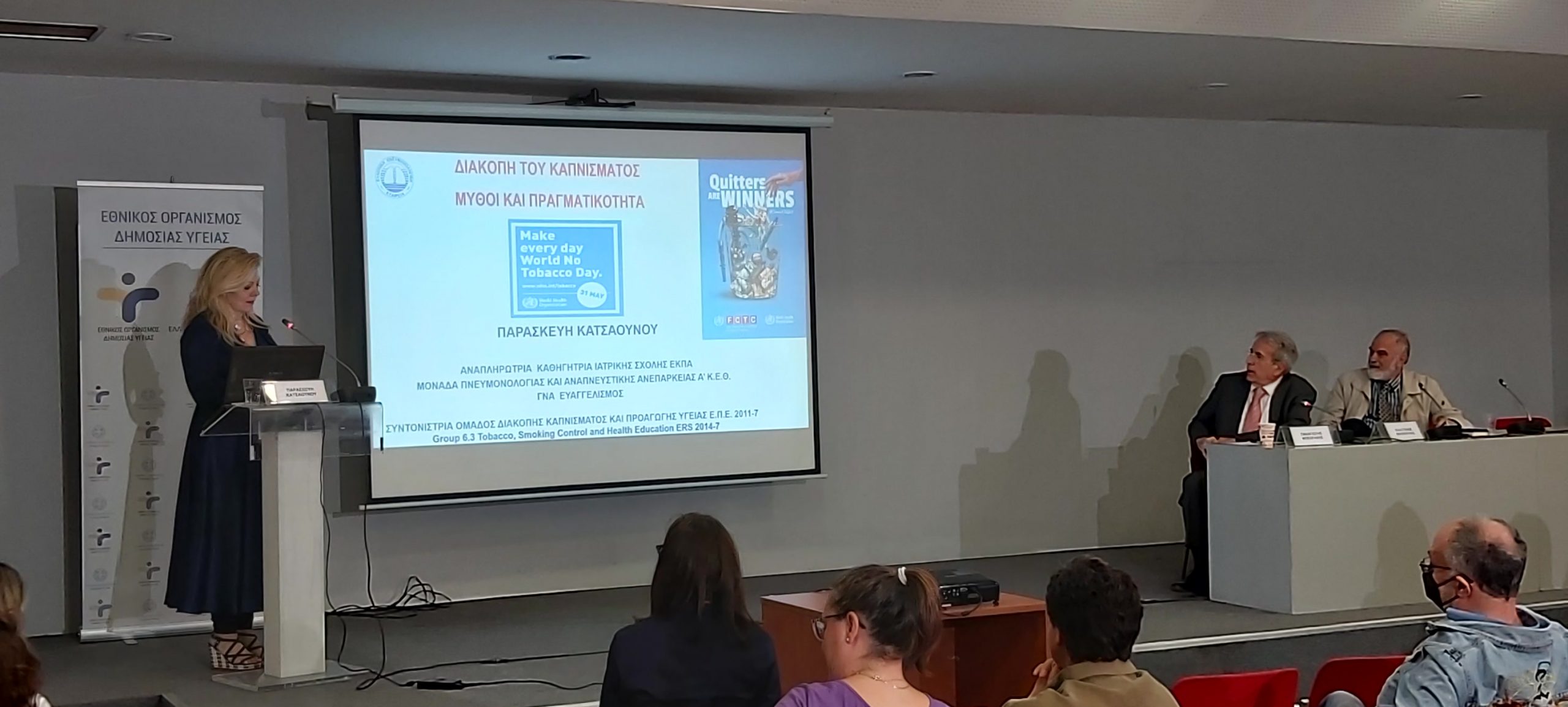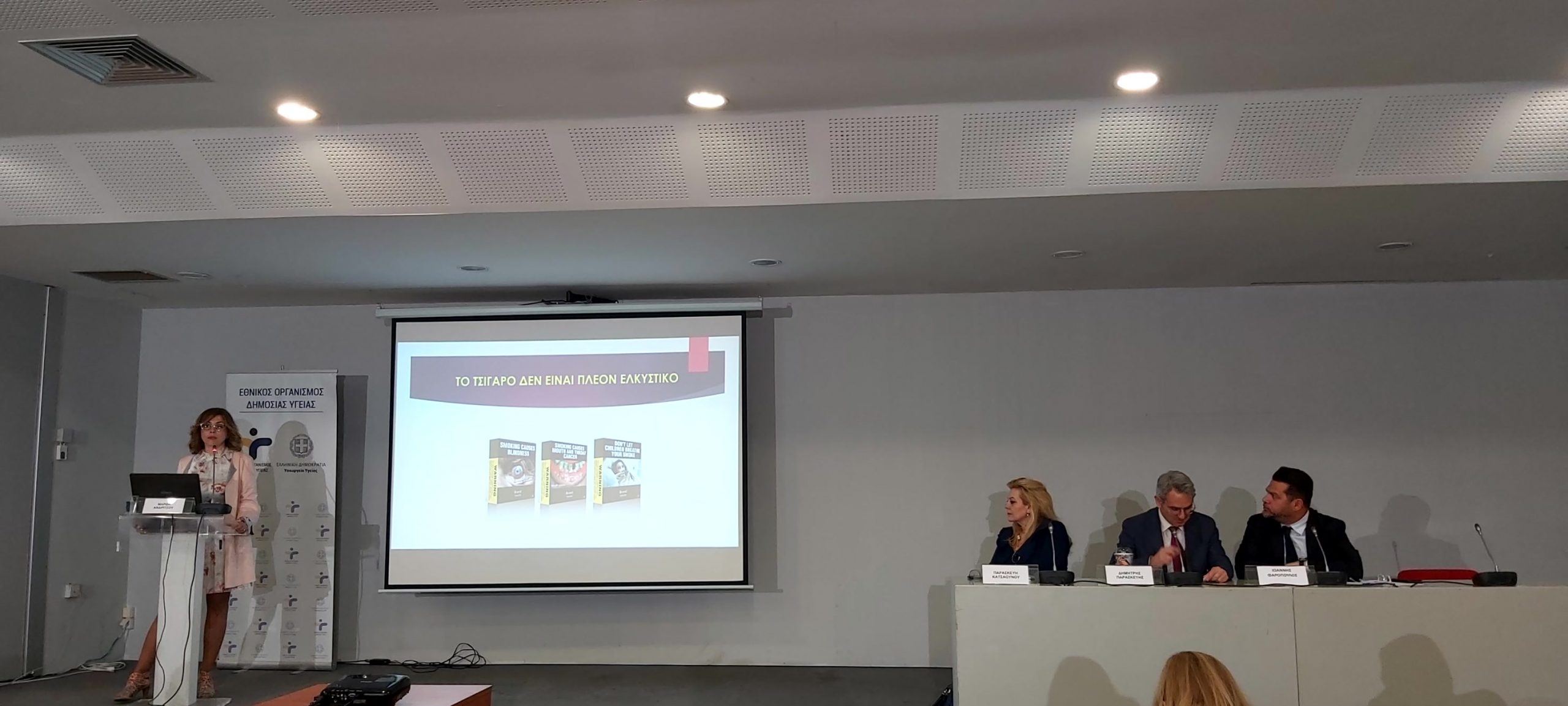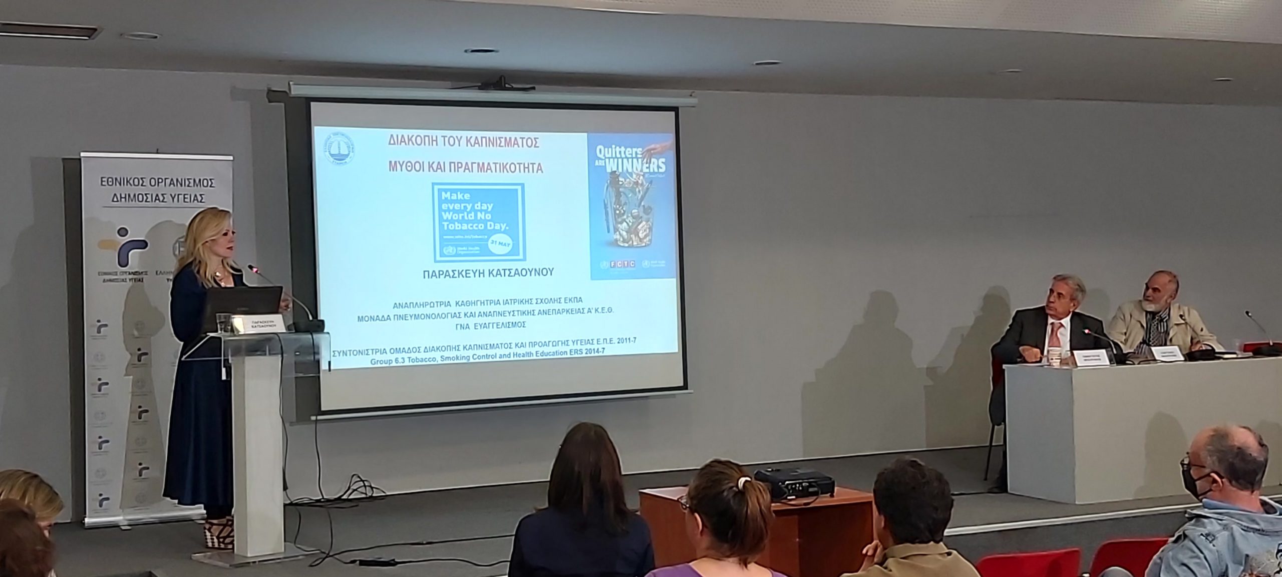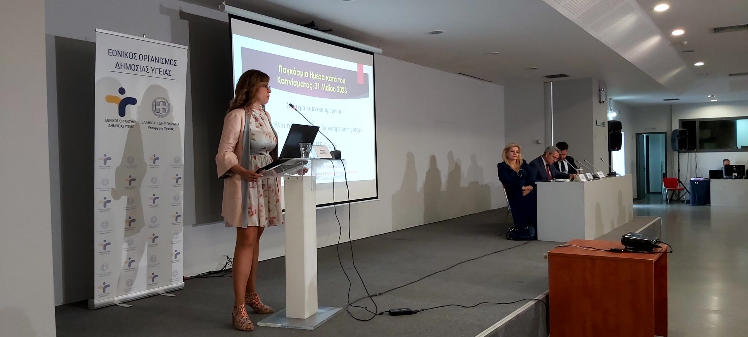 Παρουσία της ηγεσίας του Υπουργείου Υγείας, πραγματοποιήθηκε η Επιστημονική Ημερίδα για την Παγκόσμια Ημέρα Κατά του Καπνίσματος, η οποία τελούσε υπό την Αιγίδα της Α.Ε. της Προέδρου της Δημοκρατίας Κατερίνας Σακελλαροπούλου και διοργάνωσε ο Εθνικός Οργανισμός Δημόσιας Υγείας, μέσω του Γραφείου Διακοπής Καπνίσματος της Διεύθυνσης Επιδημιολογίας και Πρόληψης Μη Μεταδοτικών Νοσημάτων και Τραυματισμών. Την Ημερίδα που διεξήχθη στο αμφιθέατρο της HELEXPΟ, παρακολούθησε μεγάλος αριθμός συμμετεχόντων, δια ζώσης, όσο και διαδικτυακά. Στην ημερίδα απηύθυναν χαιρετισμό η Υπουργός Υγείας της Υπηρεσιακής Κυβέρνησης κα. Αναστασία Κοτανίδου, η αναπληρώτρια υπουργός Υγείας κα. Ασημίνα Γκάγκα, o Γενικός Γραμματέας Πρωτοβάθμιας Φροντίδας του Υπουργείου Υγείας κ. Μάριος Θεμιστοκλέους, ο Αντιπεριφερειάρχης Δ.Υ και Κοινωνικής Μέριμνας κ. Ιωάννης Κεχρής, εκπρόσωπος από τη Γενική Διεύθυνση Δημόσιας Υγείας, ο Αντιπρόεδρος του Δ.Σ. ΕΟΔΥ για τα Μεταδοτικά κ. Δημήτριος Παρασκευής και ο Αντιπρόεδρος του Δ.Σ. για τα Μη- Μεταδοτικά κ. Σπύρος Σαπουνάς. Η Υπουργός Υγείας κα. Κοτανίδου συνεχάρη τους διοργανωτές και επισήμανε στο χαιρετισμό της για την κήρυξη των Εργασιών, ότι « Το κάπνισμα προκαλεί όχι μόνο καρκίνο του πνεύμονα, αλλά ευθύνεται, επίσης, για πάρα πολλά δεινά τα οποία έχουμε στη ζωή μας και πως αντίστοιχες επιστημονικές ημερίδες πρέπει να γίνονται συχνότερα». Στη συνέχεια διακεκριμένοι ομιλητές ενημέρωσαν τους συμμετέχοντες για τις νεότερες εξελίξεις στον τομέα του καπνίσματος, ενώ στα θέματα που συζητήθηκαν δόθηκε ιδιαίτερη έμφαση τόσο στο ενεργητικό όσο και στο παθητικό κάπνισμα/άτμισμα, παγκοσμίως αλλά και στην Ελλάδα, στις υφιστάμενες και επερχόμενες νομοθετικές ρυθμίσεις για τα θερμαινόμενα προϊόντα καπνού, καθώς και στους μηχανισμούς σωματικής και ψυχολογικής εξάρτησης αλλά και τους τρόπους διαχείρισης και αντιμετώπισης της νόσου του καπνίσματος. Ιδιαίτερη μνεία έγινε στα νεότερα καπνικά προϊόντα και αποσαφηνίστηκε ότι δεν έχουν θέση στη διακοπή καπνίσματος ενώ διαχωρίστηκαν οι μύθοι και η πραγματικότητα για το κάπνισμα και τη διακοπή καπνίσματος. Επιπλέον, συζητήθηκε ο ρόλος της κοινωνίας των πολιτών, των ευρωπαϊκών προγραμμάτων σχετικών με το κάπνισμα σε επίπεδο Ε.Ε. και των ιατρείων διακοπής καπνίσματος στον αγώνα κατά του καπνίσματος.