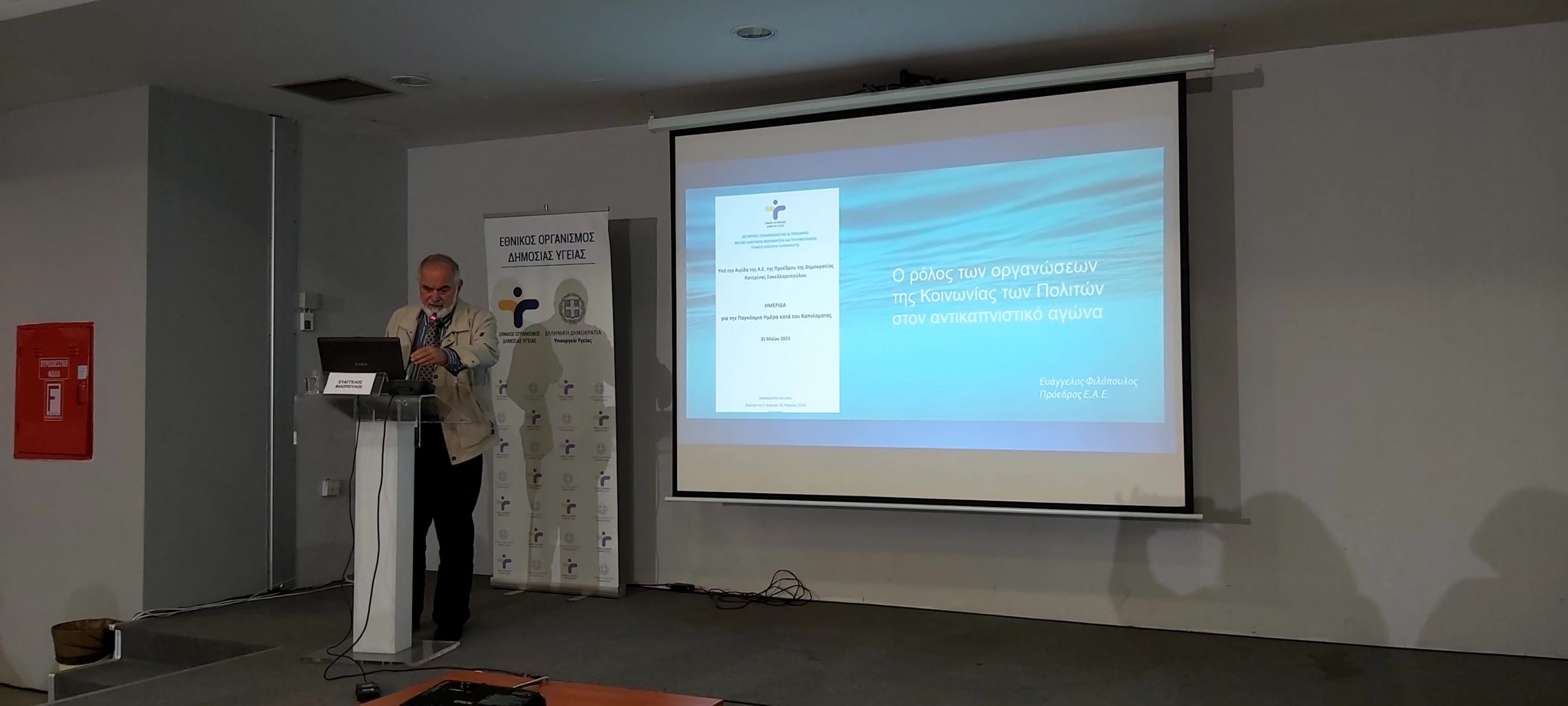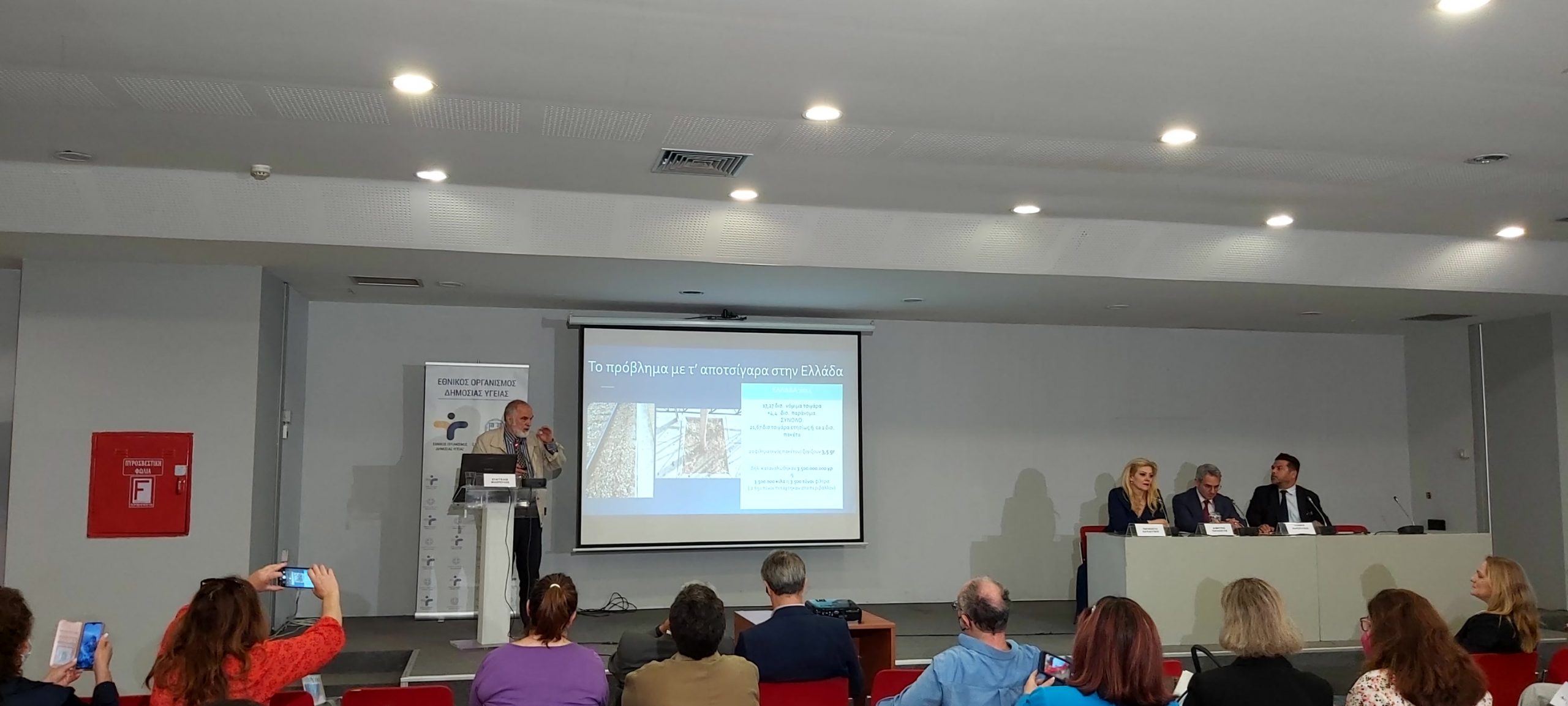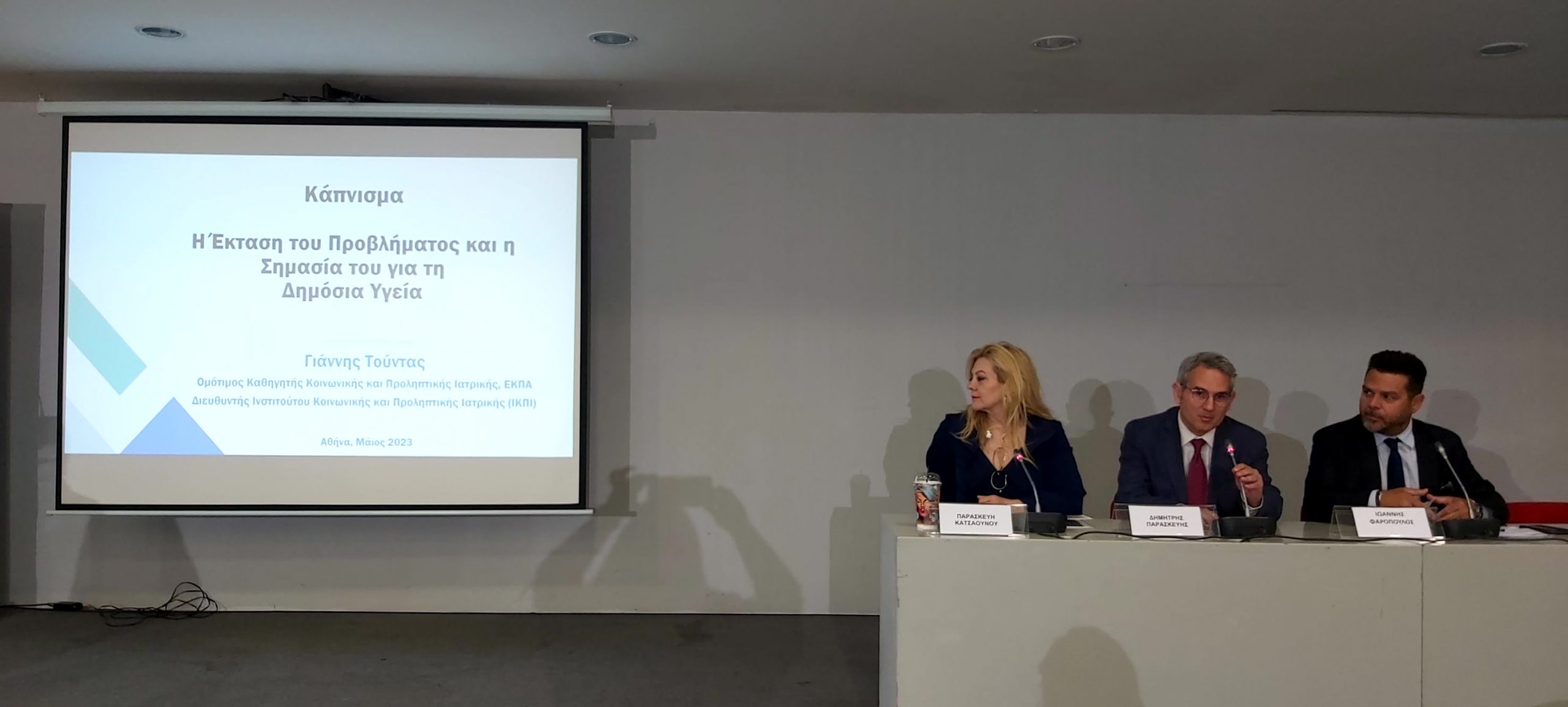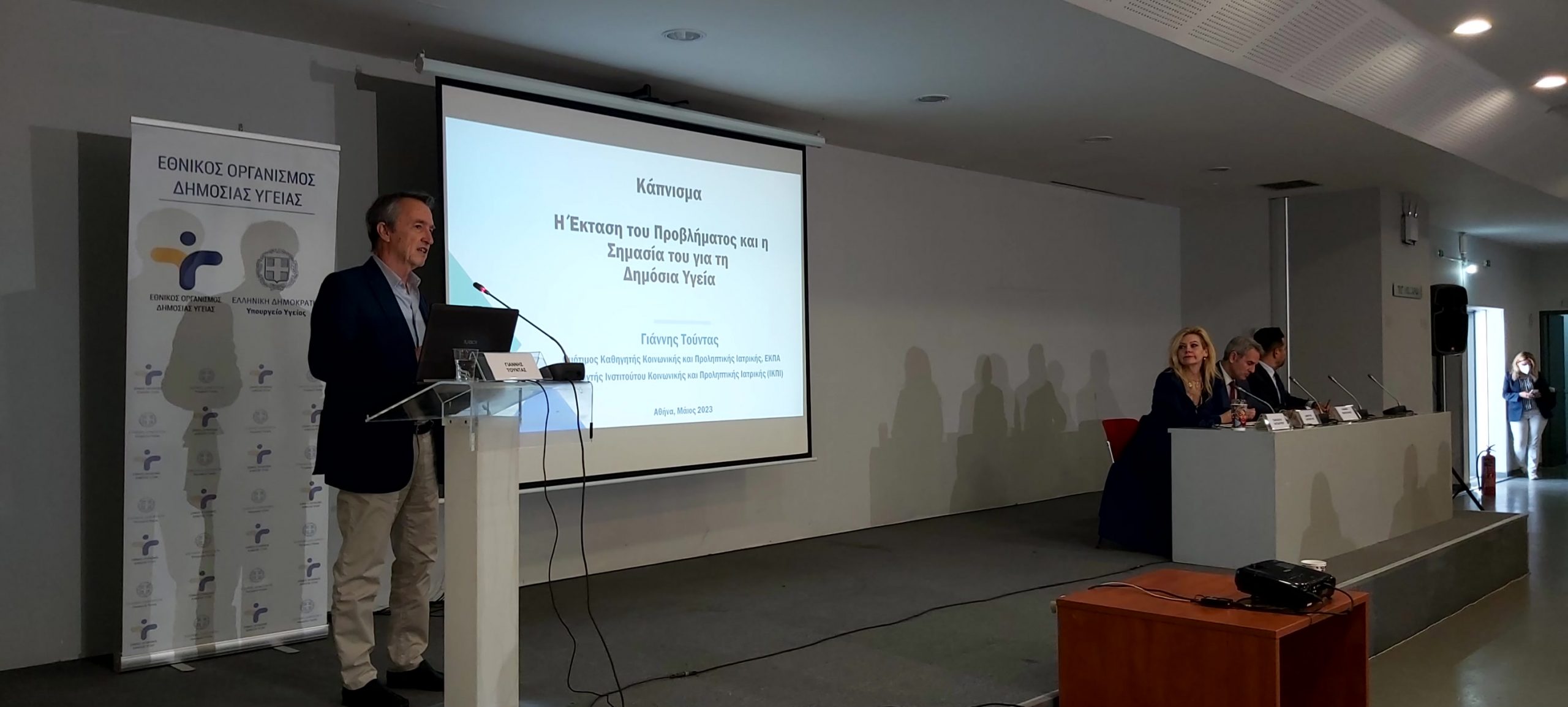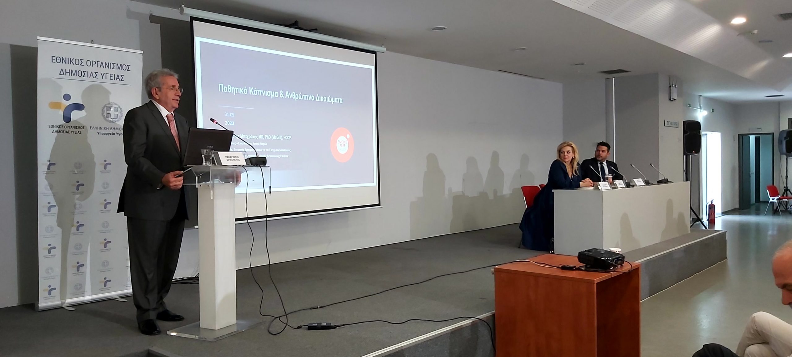 Παρουσία της ηγεσίας του Υπουργείου Υγείας, πραγματοποιήθηκε η Επιστημονική Ημερίδα για την Παγκόσμια Ημέρα Κατά του Καπνίσματος, η οποία τελούσε υπό την Αιγίδα της Α.Ε. της Προέδρου της Δημοκρατίας Κατερίνας Σακελλαροπούλου και διοργάνωσε ο Εθνικός Οργανισμός Δημόσιας Υγείας, μέσω του Γραφείου Διακοπής Καπνίσματος της Διεύθυνσης Επιδημιολογίας και Πρόληψης Μη Μεταδοτικών Νοσημάτων και Τραυματισμών. Την Ημερίδα που διεξήχθη στο αμφιθέατρο της HELEXPΟ, παρακολούθησε μεγάλος αριθμός συμμετεχόντων, δια ζώσης, όσο και διαδικτυακά. Στην ημερίδα απηύθυναν χαιρετισμό η Υπουργός Υγείας της Υπηρεσιακής Κυβέρνησης κα. Αναστασία Κοτανίδου, η αναπληρώτρια υπουργός Υγείας κα. Ασημίνα Γκάγκα, o Γενικός Γραμματέας Πρωτοβάθμιας Φροντίδας του Υπουργείου Υγείας κ. Μάριος Θεμιστοκλέους, ο Αντιπεριφερειάρχης Δ.Υ και Κοινωνικής Μέριμνας κ. Ιωάννης Κεχρής, εκπρόσωπος από τη Γενική Διεύθυνση Δημόσιας Υγείας, ο Αντιπρόεδρος του Δ.Σ. ΕΟΔΥ για τα Μεταδοτικά κ. Δημήτριος Παρασκευής και ο Αντιπρόεδρος του Δ.Σ. για τα Μη- Μεταδοτικά κ. Σπύρος Σαπουνάς. Η Υπουργός Υγείας κα. Κοτανίδου συνεχάρη τους διοργανωτές και επισήμανε στο χαιρετισμό της για την κήρυξη των Εργασιών, ότι « Το κάπνισμα προκαλεί όχι μόνο καρκίνο του πνεύμονα, αλλά ευθύνεται, επίσης, για πάρα πολλά δεινά τα οποία έχουμε στη ζωή μας και πως αντίστοιχες επιστημονικές ημερίδες πρέπει να γίνονται συχνότερα». Στη συνέχεια διακεκριμένοι ομιλητές ενημέρωσαν τους συμμετέχοντες για τις νεότερες εξελίξεις στον τομέα του καπνίσματος, ενώ στα θέματα που συζητήθηκαν δόθηκε ιδιαίτερη έμφαση τόσο στο ενεργητικό όσο και στο παθητικό κάπνισμα/άτμισμα, παγκοσμίως αλλά και στην Ελλάδα, στις υφιστάμενες και επερχόμενες νομοθετικές ρυθμίσεις για τα θερμαινόμενα προϊόντα καπνού, καθώς και στους μηχανισμούς σωματικής και ψυχολογικής εξάρτησης αλλά και τους τρόπους διαχείρισης και αντιμετώπισης της νόσου του καπνίσματος. Ιδιαίτερη μνεία έγινε στα νεότερα καπνικά προϊόντα και αποσαφηνίστηκε ότι δεν έχουν θέση στη διακοπή καπνίσματος ενώ διαχωρίστηκαν οι μύθοι και η πραγματικότητα για το κάπνισμα και τη διακοπή καπνίσματος. Επιπλέον, συζητήθηκε ο ρόλος της κοινωνίας των πολιτών, των ευρωπαϊκών προγραμμάτων σχετικών με το κάπνισμα σε επίπεδο Ε.Ε. και των ιατρείων διακοπής καπνίσματος στον αγώνα κατά του καπνίσματος.
