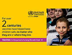 Η Ευρωπαϊκή Εβδομάδα Εμβολιασμών είναι μια πρωτοβουλία του Ευρωπαϊκού Γραφείου του Παγκόσμιου Οργανισμού Υγείας (WHO/Europe), και πραγματοποιείται φέτος στις 24-30 Απριλίου 2022. Τα κράτη-μέλη ενώνουν τις προσπάθειές τους υιοθετώντας το κοινό σύνθημα « Μακροζωία για όλους» (#Long life for all), με στόχο την ενίσχυση της σημασίας της ισότιμης και διευρυμένης πρόσβασης στα εμβόλια, που θα συμβάλει σε μια μακρά και υγιή ζωή για όλους.[/column]