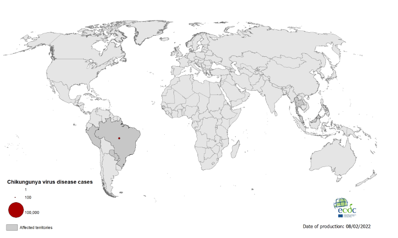 Γεωγραφική κατανομή κρουσμάτων πυρετού Chikungunya, 2022