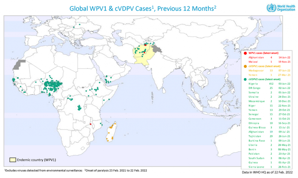Τον Ιανουάριο 2022 αναφέρθηκε ένα κρούσμα από τον ιό της πολιομυελίτιδας WPV1 στο Μαλάουι.