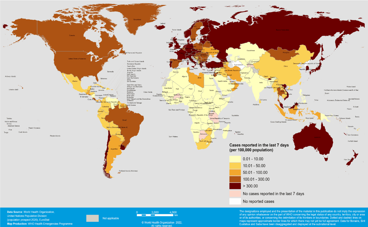 Κρούσματα COVID-19 ανά 100.000 πληθυσμού σε χώρες / περιοχές, 28 Φεβρουαρίου – 6 Μαρτίου 2022