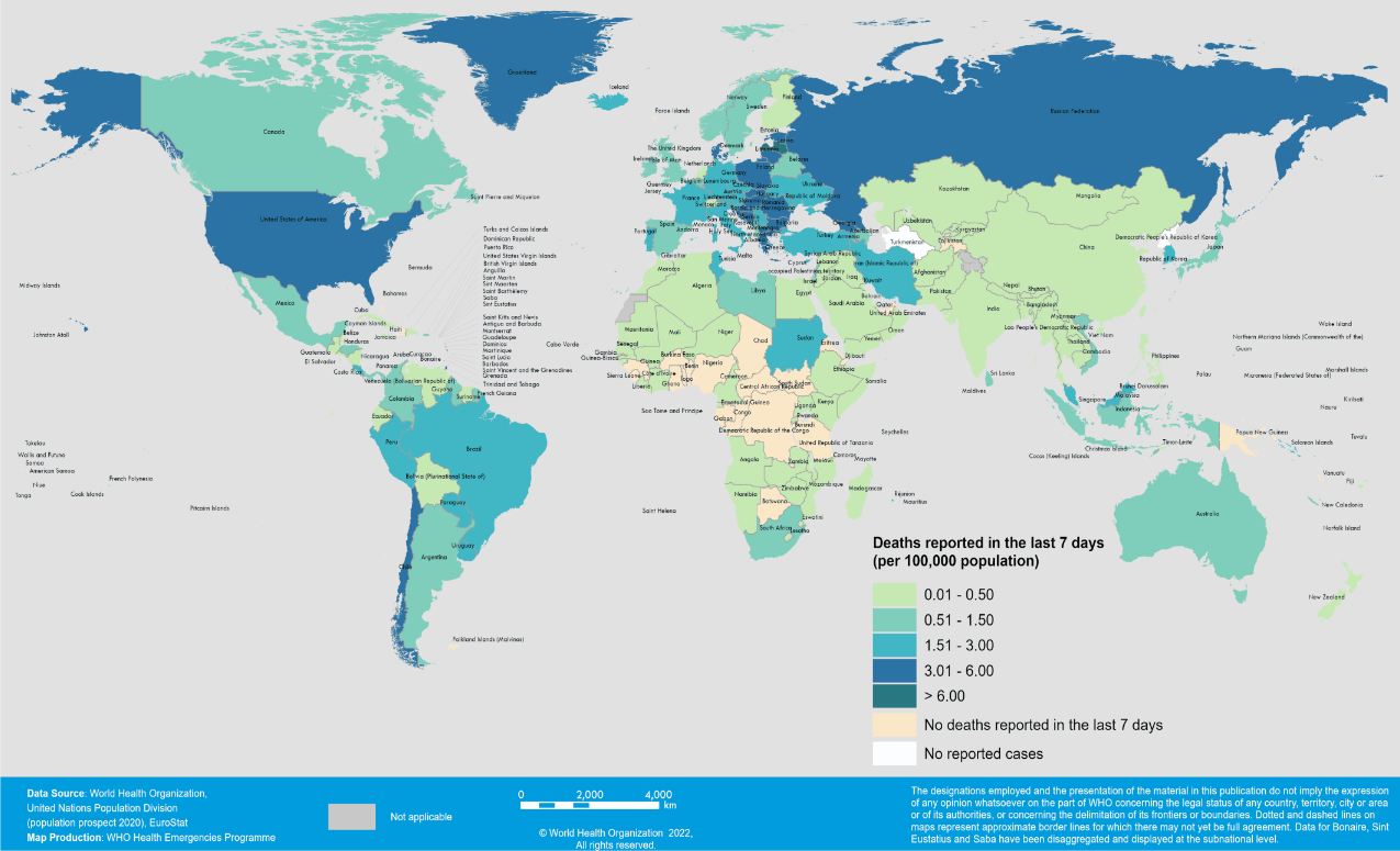 Θάνατοι COVID-19 ανά 100.000 πληθυσμού σε χώρες / περιοχές, 28 Φεβρουαρίου – 6 Μαρτίου 2022