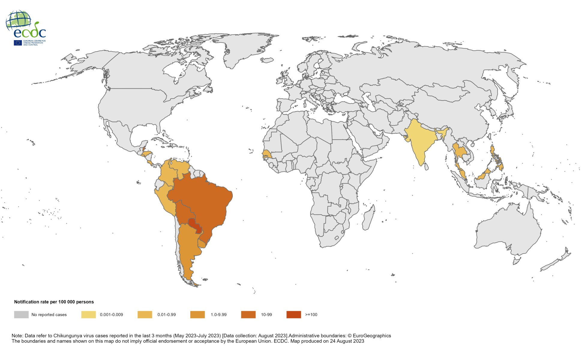Γεωγραφική κατανομή κρουσμάτων πυρετού Chikungunya, Μάιος – Ιούλιος 2023