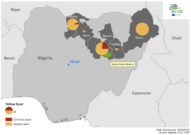 Στις 29 Αυγούστου 2019 αναφέρθηκε στη Νιγηρία ένα ύποπτο κρούσμα κίτρινου πυρετού στην πολιτεία Kano με ιστορικό ταξιδιού στο πάρκο Yankari, Alkaleri, πολιτεία Bauchi.