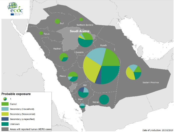 Από τις αρχές του 2019 έως τις 30 Οκτωβρίου 2019 αναφέρθηκαν 197 κρούσματα με λοίμωξη από MERS-CoV, συμπεριλαμβανομένων 54 θανάτων, στη Σαουδική Αραβία (184κρούσματα, 50 θάνατοι) και στο Ομάν (13 κρούσματα, 4 θάνατοι),