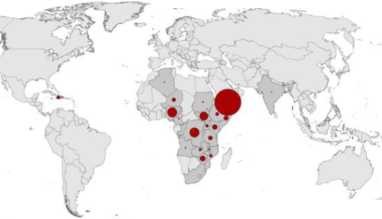 Δημοκρατία του Κονγκό: Από τις αρχές του 2018 έως τις 23 Σεπτεμβρίου 2018 ανακοινώθηκαν 82792 κρούσματα, συμπεριλαμβανομένων 2018 θανάτων.