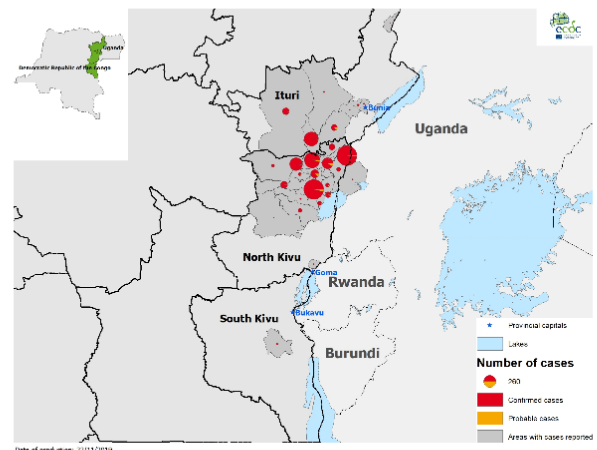 Από τον Αύγουστο του 2018 είναι σε εξέλιξη επιδημία αιμορραγικού πυρετού Ebola (EVD) στη Λαϊκή Δημοκρατία του Κονγκό. Έως τις 19 Νοεμβρίου 2019 ανακοινώθηκαν 3298 κρούσματα (3180 επιβεβαιωμένα, 118 πιθανά κρούσματα), συμπεριλαμβανομένων 2197 θανάτων. Τα κρούσματα εντοπίζονται στις επαρχίες South Kivu, North Kivu και Ituri. Τις τελευταίες 21 ημέρες ο μεγαλύτερος αριθμός κρουσμάτων αναφέρθηκε στις περιοχές Mabalako, Mandima και Beni.