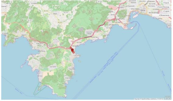 Γεωγραφική κατανομή των ξενοδοχείων στην Palmanova (Ν = 6) όπου διέμειναν τα κρούσματα λεγεωνέλλωσης, έως τις 18 Οκτωβρίου 2017.