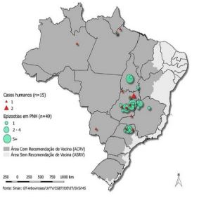 Σύμφωνα με τον Παγκόσμιο Οργανισμό Υγείας συνίσταται ο εμβολιασμός στις περιοχές Μίνας Ζεράις (Minas Gerais), Άκρι (Acre), Αμαπά (Amapá), Αμαζόνας (Amazonas), Ντιστρίτο Φεντεράλ (Distrito Federal) (συμπεριλαμβανομένης της πόλης της Μπραζίλια), Γκοϊάς (Goiás), Μαρανίαο (Maranhão), Μάτο Γκρόσο (Mato Grosso) Μάτο Γκρόσο ντο σουλ (Mato Grosso do Sul), Παρά (Pará), Ροντόνια (Rondônia), Ροραίμα (Roraima) και Τοκαντίς (Tocantins) και καθορισμένες περιοχές από τις ακόλουθες περιοχές: Bahia, Piauí, Paraná, Ρίο Grande do Sul, Santa Catarina και Σάο Πάολο. Ο εμβολιασμός συνιστάται επίσης στους ταξιδιώτες που επισκέπτονται τους καταρράκτες Ιγκουάζου (Iguazu Falls) και τις αγροτικές περιοχές του Σάο Πάολο.